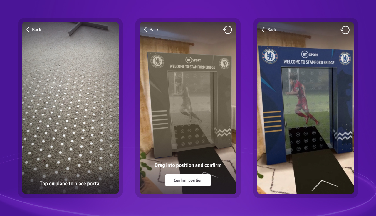 During match days, users could use their devices to walk through an AR portal into a 360 degree view from within the stadiums.